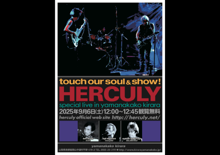 約50年ぶりの遠征野外ライブ!遠征とは言っても、東京から100キロほどの距離です。土曜日のドライブがてら、立ち寄っていただけると嬉しいです。観覧無料、台風明けとなれば、ステージ後方、富士山もその美しい姿を魅せてくれることでしょう!最高のシチュエーションで、最高のパフォーマンスをお届けいたします。 詳細は、スケジュール のページをご覧ください。 Post Share Hatena Line RSS feedly Pin it note 10月18日(土) 新中野弁天にて、herculy 主…前の記事 ビジュアル完成しました!次の記事